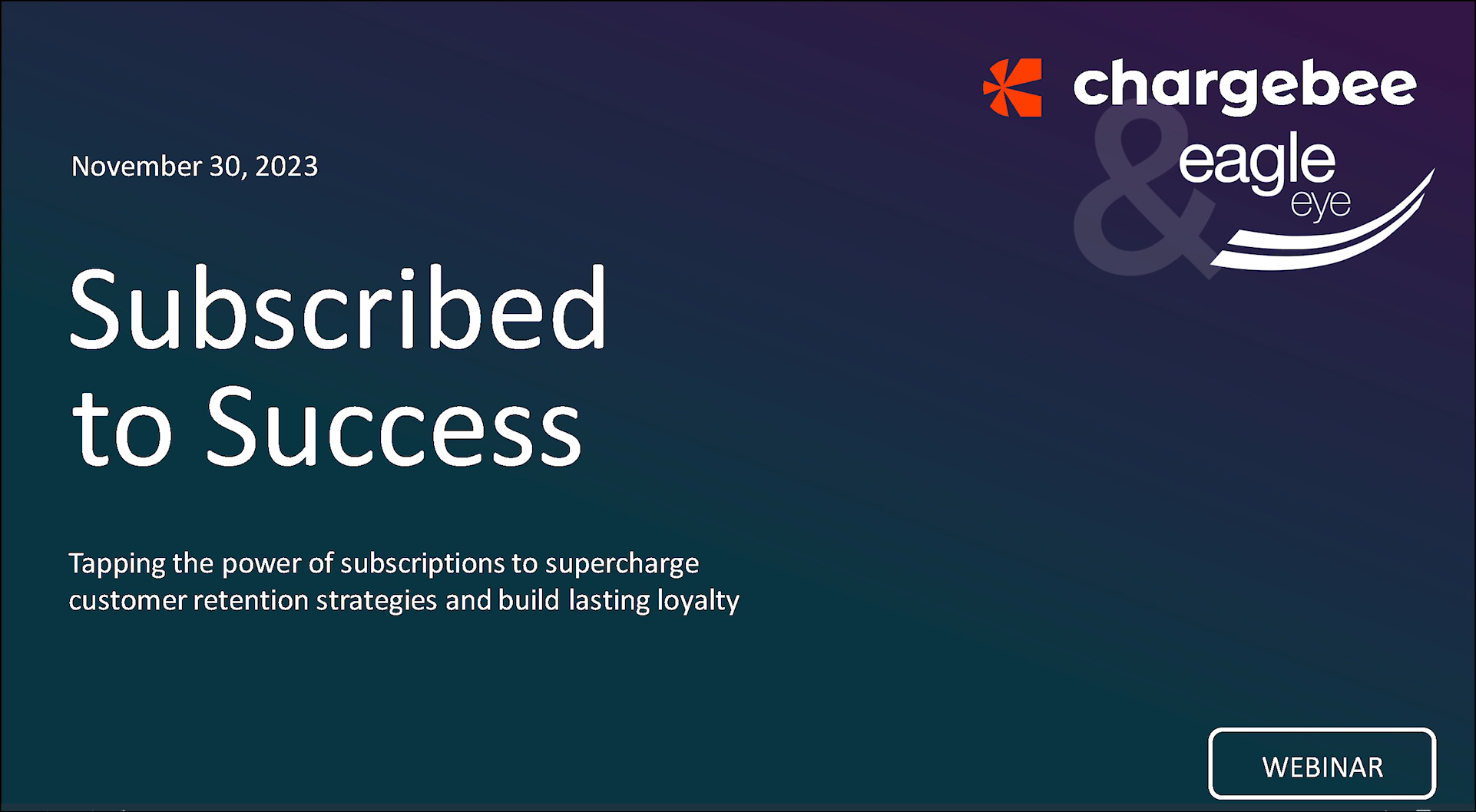 Companies – especially retailers – are constantly seeking every advantage possible to attract, engage, and retain customers. Sign up for this webinar to join experts from Chargebee and Eagle Eye in exploring how subscription and loyalty programs offer a potent combination for retailers to achieve these critical objectives.
