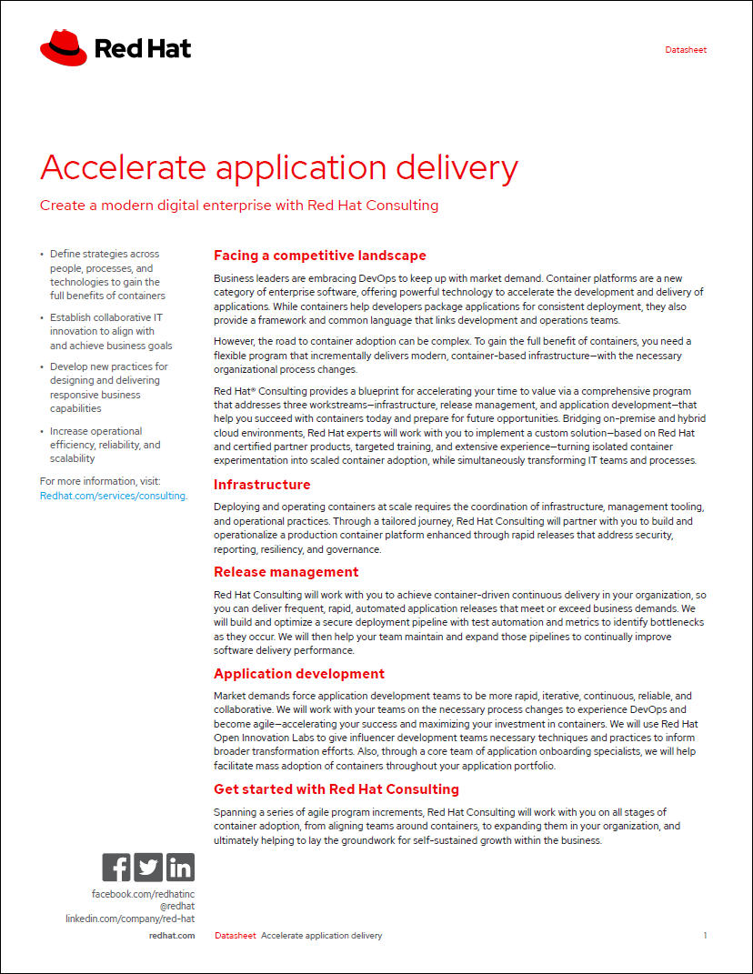 Download this eBook and discover how Red Hat Consulting Services helps you accelerate your time to value.