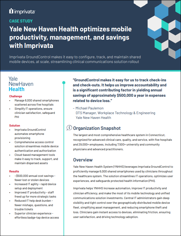 Yale New Haven Health optimizes mobile productivity, management, and savings with Imprivata