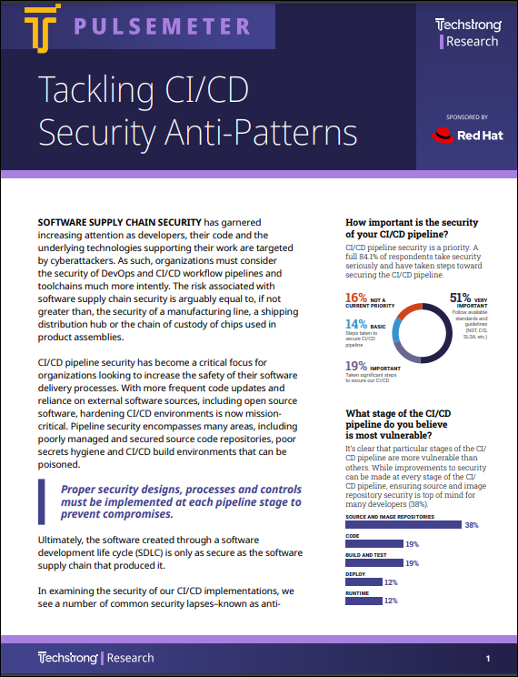 Techstrong Research surveyed a group of tech experts to understand their views and experiences related to CI/CD pipeline security. Download the paper.