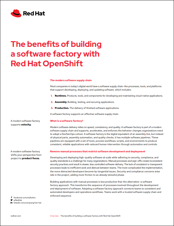 Find out about the benefits of building a software factory with Red Hat OpenShift. Read this informative overview for more details.