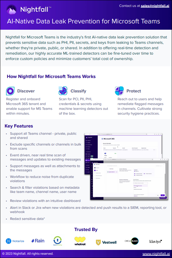 - Nightfall’s ability to automatically detect and protect sensitive data across various platforms.