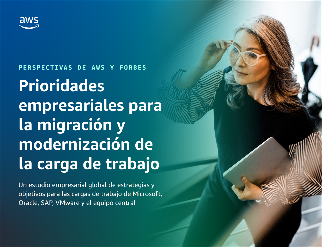 Lea el libro electrónico Enterprise Priorities for Workload Migration and Modernization (Prioridades empresariales para migrar y modernizar las cargas de trabajo) para descubrir cómo AWS puede ayudarlo a realizar lo siguiente: