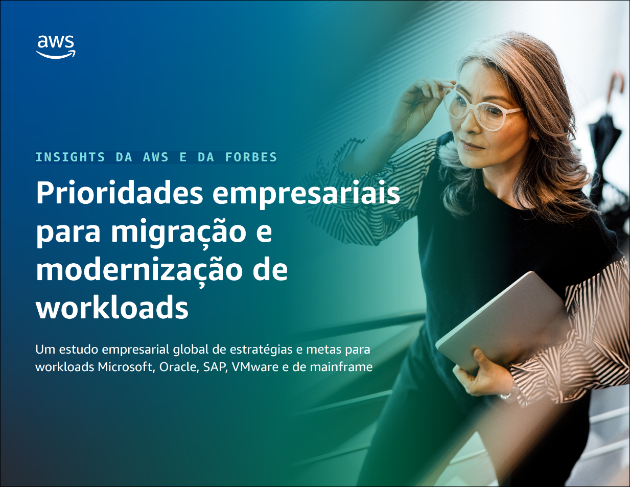 Leia o e-book Prioridades empresariais para migração e modernização de workloads e saiba como a AWS pode você a: