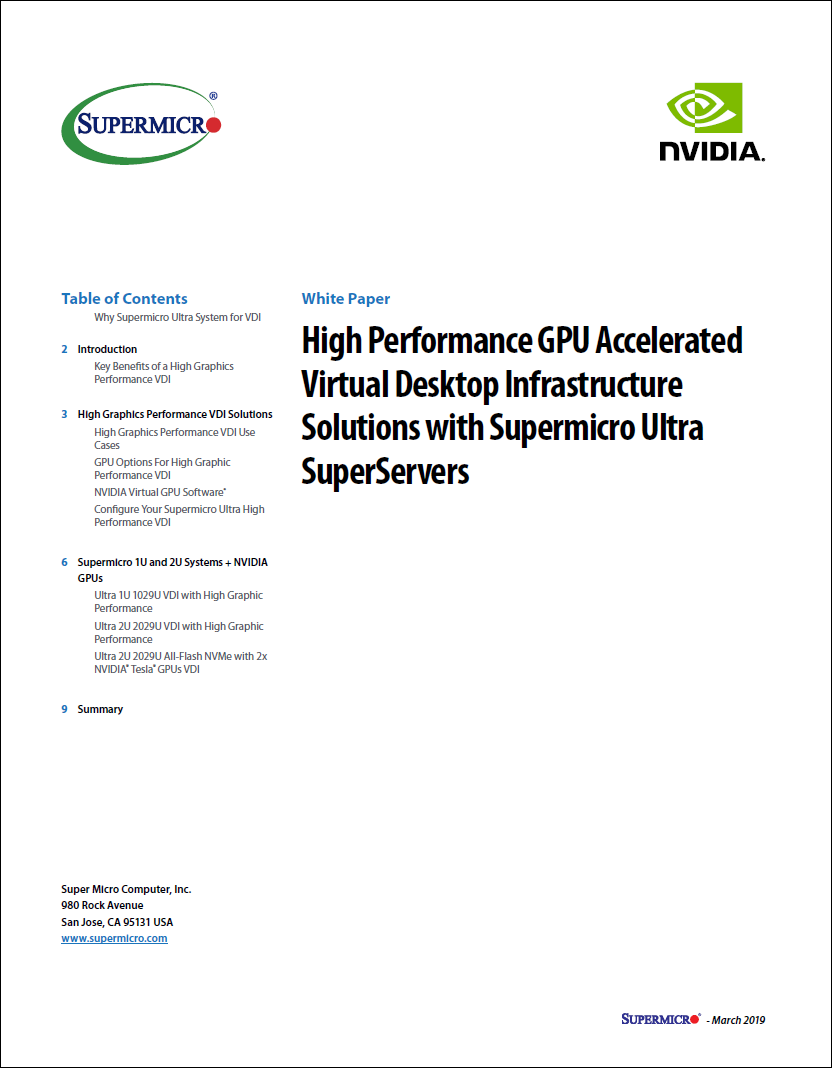 High Performance GPU Accelerated Virtual Desktop Infrastructure Solutions with Supermicro Ultra SuperServers