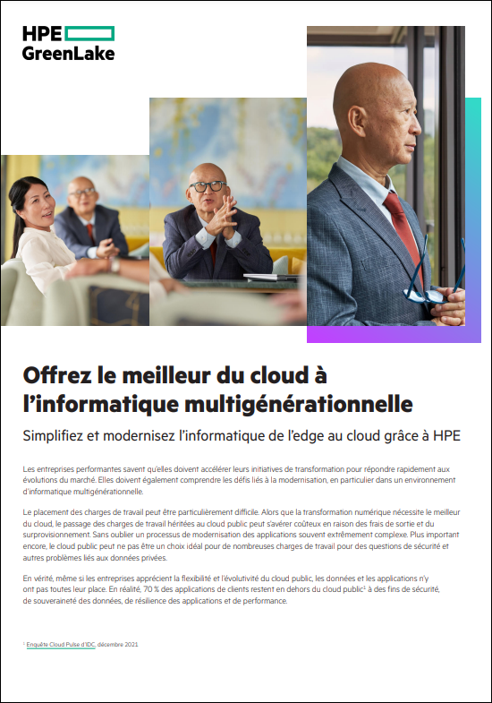 La plupart des entreprises ont résolument entamé leur migration vers le cloud hybride. Cependant, ces premiers succès peuvent engendrer des problèmes de coûts, de risques et de complexité liés au transfert des charges de travail héritées vers le cloud public, freinant ainsi le processus de modernisation. Déployez l’expérience cloud dans votre environnement IT multigénérationnel et aidez votre entreprise à aller plus loin en: