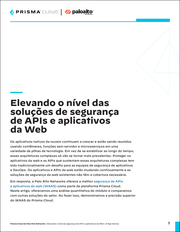 A Palo Alto Networks está enfrentando esse problema de frente com nosso módulo de segurança de aplicativos da Web e de APIs, uma parte de nossos recursos de proteção de cargas de trabalho na nuvem na plataforma Prisma® Cloud.