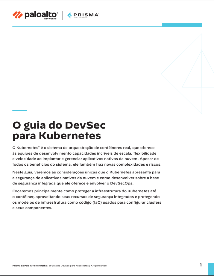 Neste guia, vamos explorar as considerações exclusivas que o Kubernetes apresenta para a segurança de aplicativos nativos da nuvem e como desenvolver sua base de segurança integrada e adotar o DevSecOps.