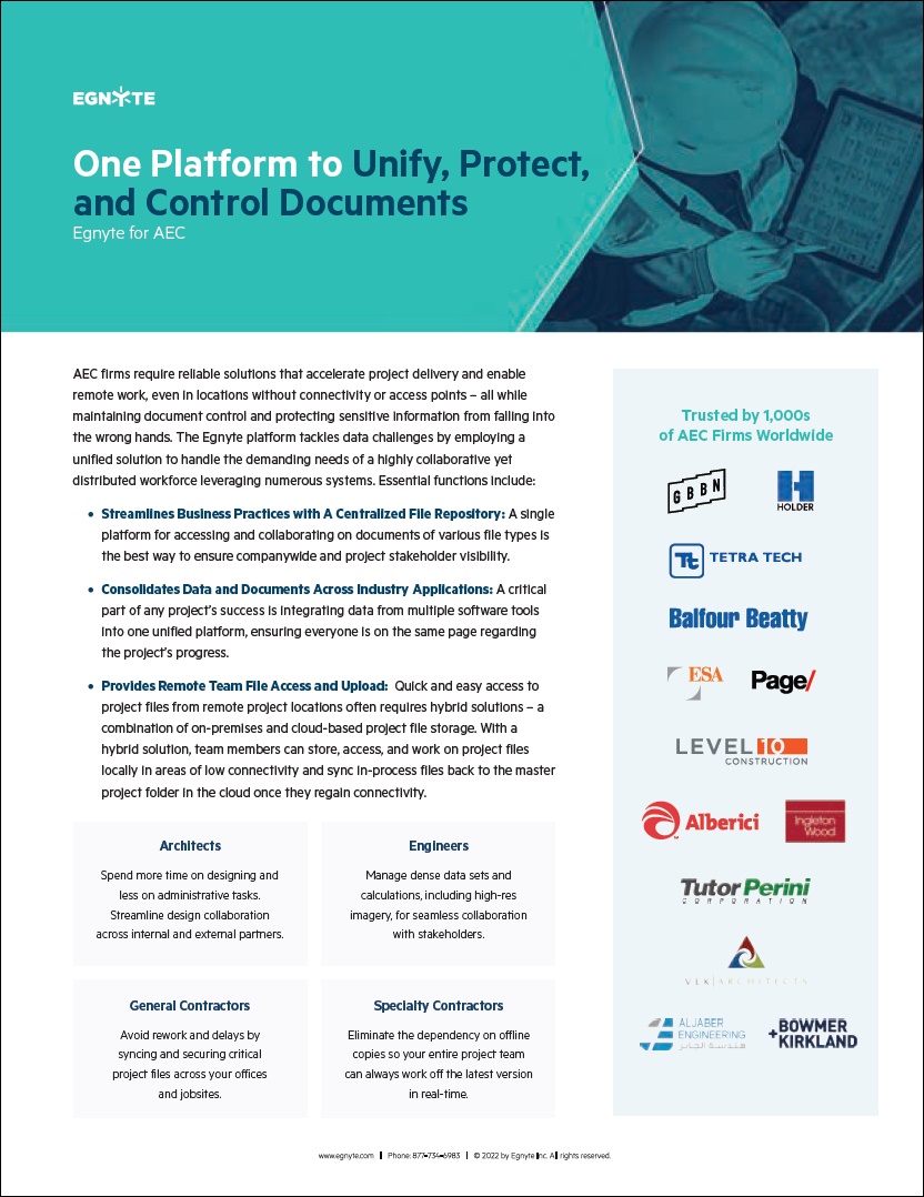 The Egnyte platform tackles data challenges by employing a unified solution to handle the demanding needs of a highly collaborative yet distributed workforce leveraging numerous systems.
