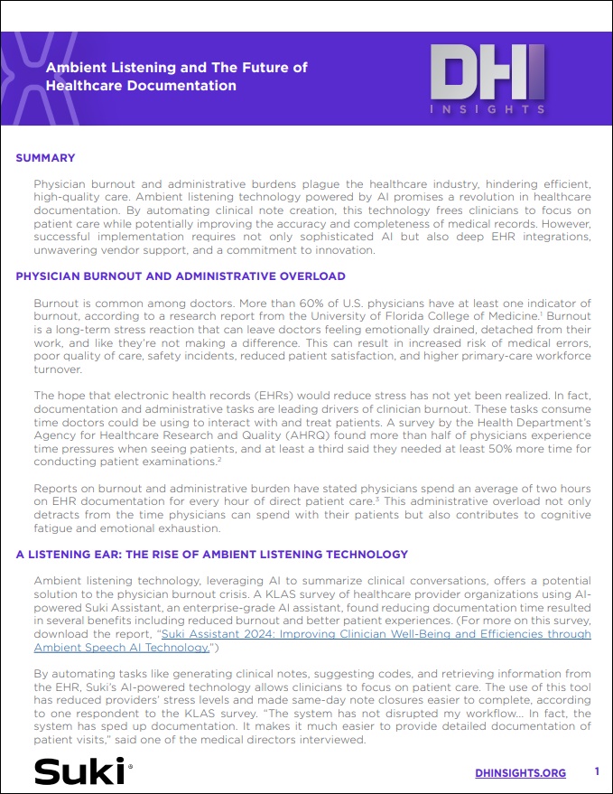 This special report on Suki Assistant explores how ambient speech AI technology is transforming clinician well-being and streamlining healthcare operations.