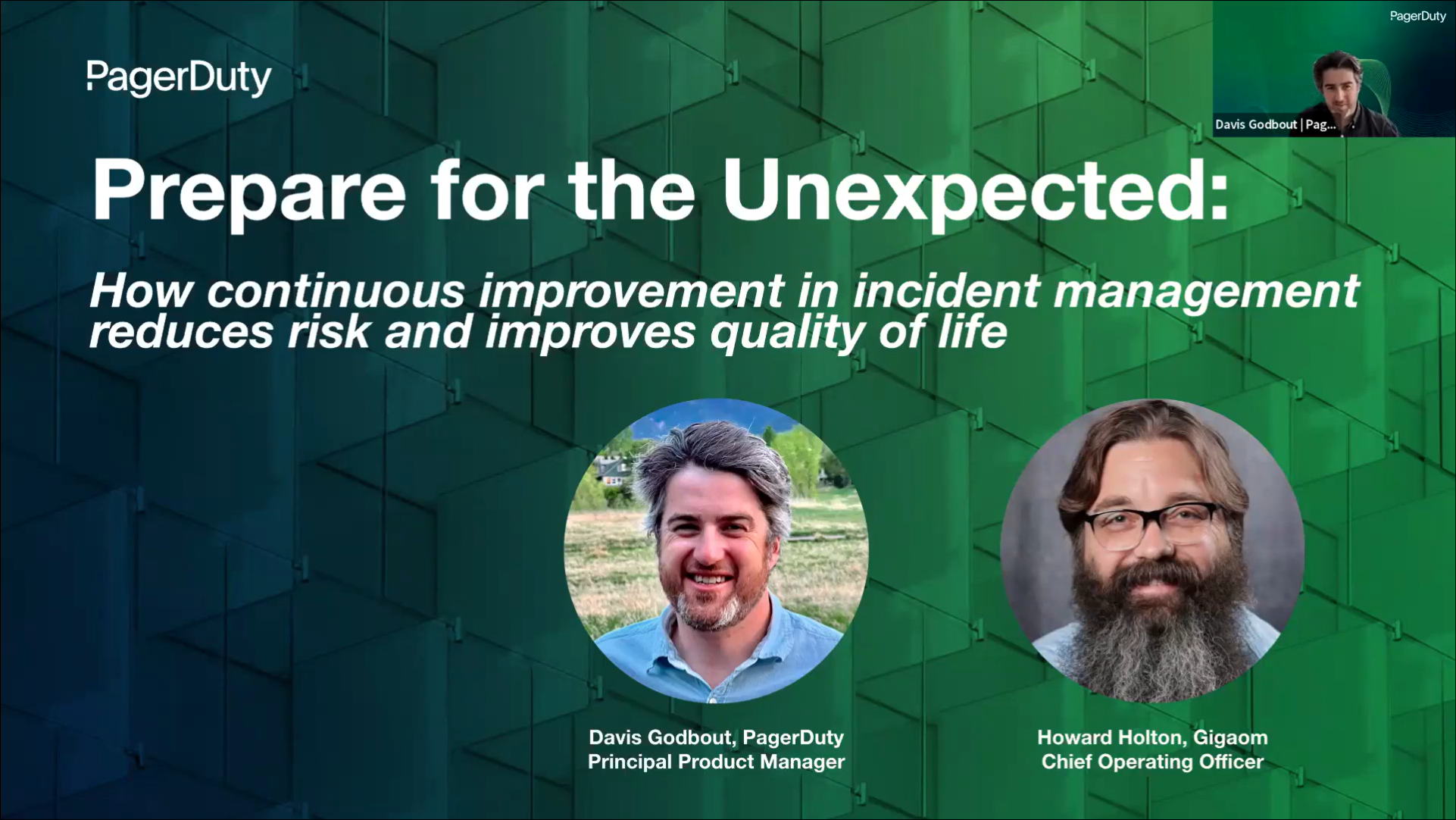 The importance of robust incident management has never been more apparent. Join Davis Godbout, Principal Product Manager at PagerDuty, and Howard Holton, CTO at GigaOm, as they share invaluable insights on preparing for unexpected disruptions and enhancing operational resilience.
