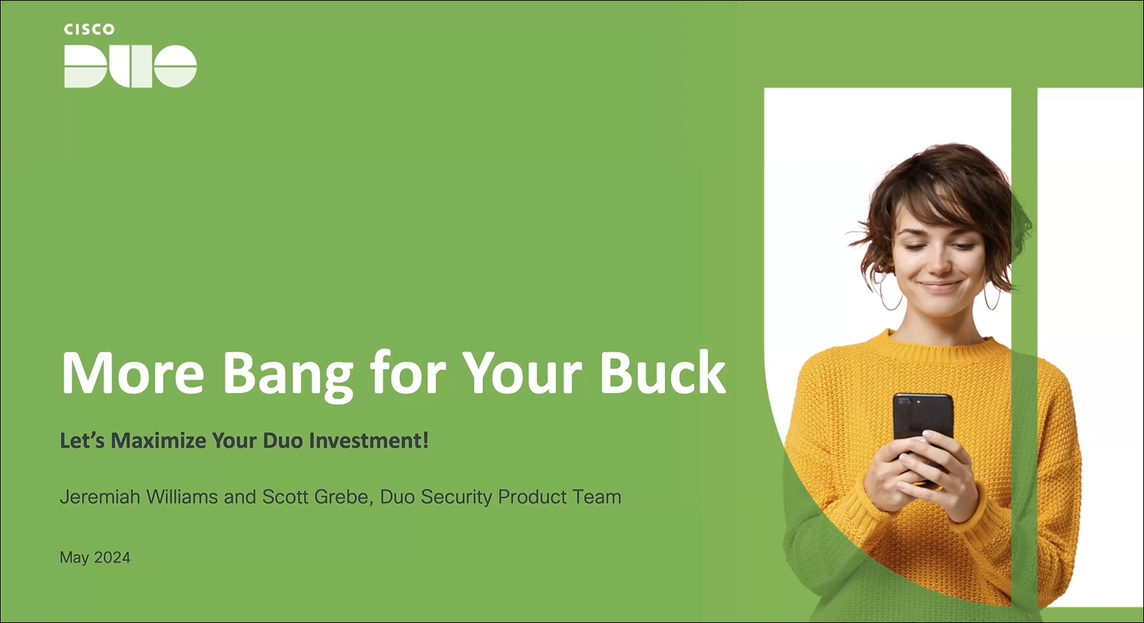 If you’ve ever purchased a product or service for your organization, you know it’s important to get the most value for your money. But to get that value, organizations need to use the features the product or service provides. All of them. Sometimes, that can be challenging. When it comes to your Duo subscription, we’re here to help. We can show you how to take advantage of all the key features in your Duo edition, so you get more bang for your buck. In this one-hour webinar we’ll discuss the features available to you in the Duo Advantage edition and demonstrate how to configure those features so you can do it yourself with confidence and maximize the value of your Duo investment.
