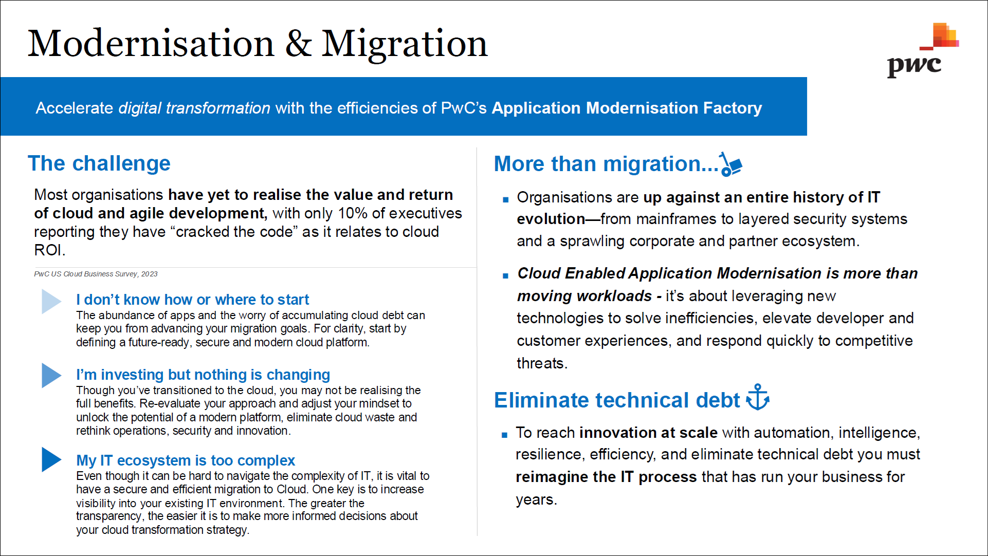 Accelerate digital transformation with the efficiencies of PwC’s Application Modernisation Factory