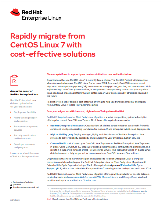 Read how Red Hat Enterprise Linux for Third Party Linux Migration with Extended Life Cycle Support eases the migration process for CentOS Linux 7 users.