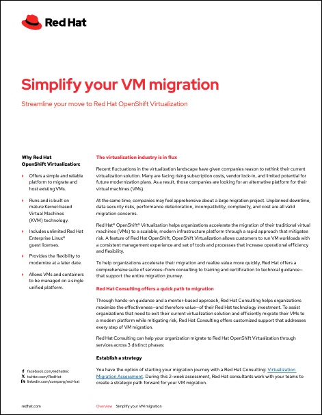 Read this overview to learn how services from Red Hat can help your organization safely and rapidly migrate virtual machines to a modern platform.