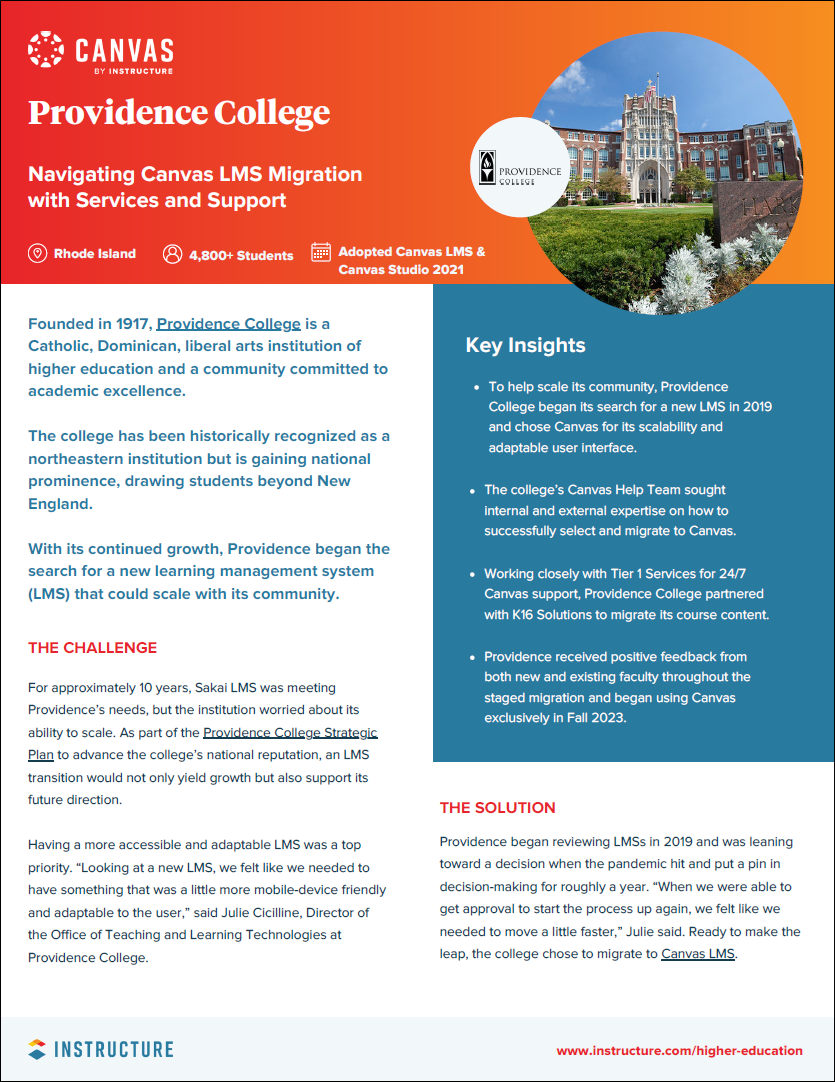 Providence College: Navigating Canvas LMS Migration with Services and Support