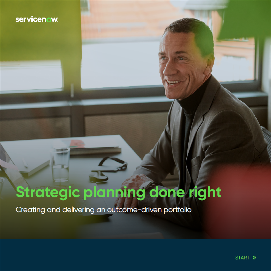 Effective strategic planning is crucial for keeping your organisation ahead of an increasingly fast pace of change. Find out how you can connect every aspect of your strategy on a single platform, aligning work to priorities and objectives, to deliver more value to the business. ServiceNow Strategic Portfolio Management will help your organisation put planning front and centre with always-on access to the most complete, accurate and current information.