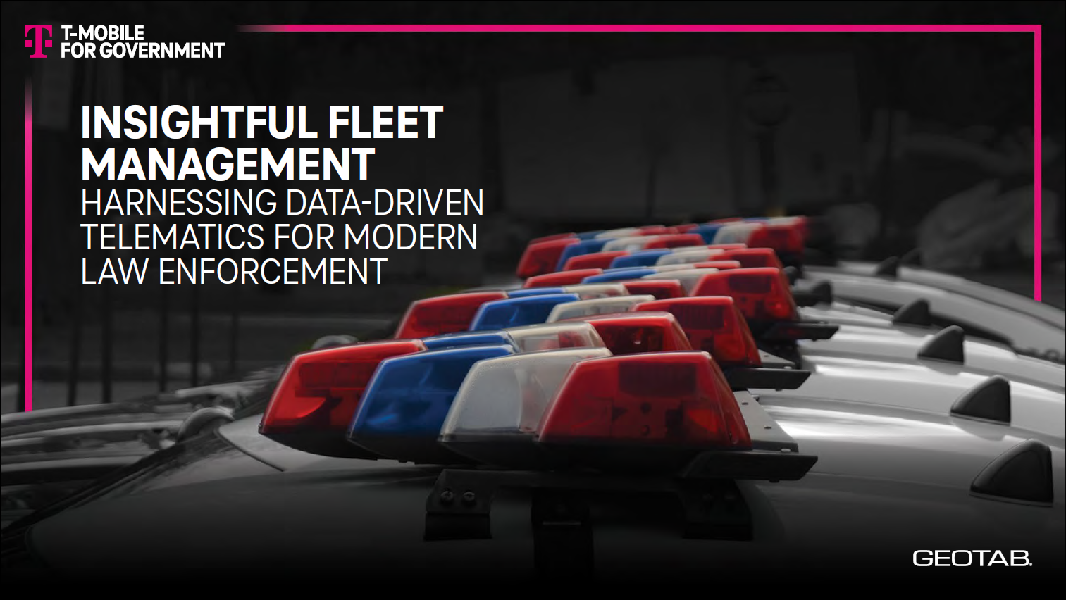 Geotab telematics solutions powered by T-Mobile offer transformative benefits for law enforcement fleet management, including predictive maintenance, fuel savings, enhanced officer safety, and increased accountability. By leveraging real-time data and advanced analytics, fleet managers can optimize vehicle health, reduce fuel costs, and improve safety and performance, Download the eBook to learn more about how our telematics can transform your operations.