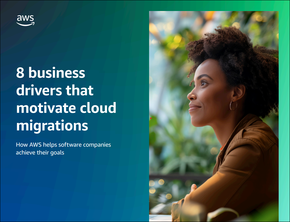 Software companies can achieve transformational results by migrating some or all of their digital assets to the cloud. With over 18 years of experience helping thousands of organizations successfully migrate to the cloud, AWS has observed eight business drivers as the most prevalent motivators for migration. Whatever your reason for migrating to the cloud, AWS has the experience to get you there. Read the eBook 8 Business Drivers That Motivate Cloud Migrations to explore how AWS Cloud services can help your business reduce costs, improve security, and achieve digital transformation.