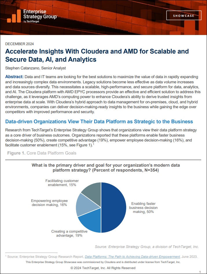 Read this ESG Showcase Brief to learn how Cloudera’s hybrid platform, powered by AMD EPYC processors, provides an effective and efficient solution to address these challenges.
