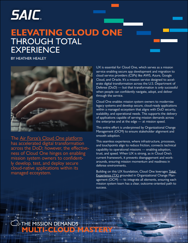 Heather Healey of SAIC explains how their TX approach leverages data-driven insights to streamline workflows, automate processes, and empower stakeholders to make faster, mission-critical decisions.