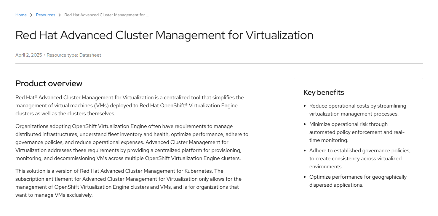 Red Hat Advanced Cluster Management for Virtualization