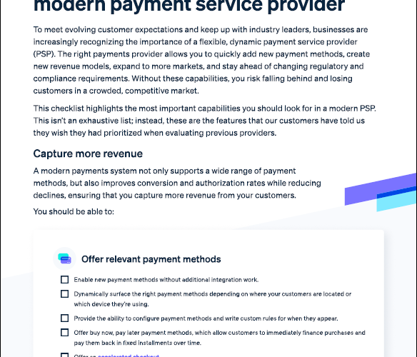 This checklist highlights the most important capabilities you should look for in a modern PSP. This isn’t an exhaustive list; instead, these are the features that our customers have told us they wish they had prioritized when evaluating previous providers.