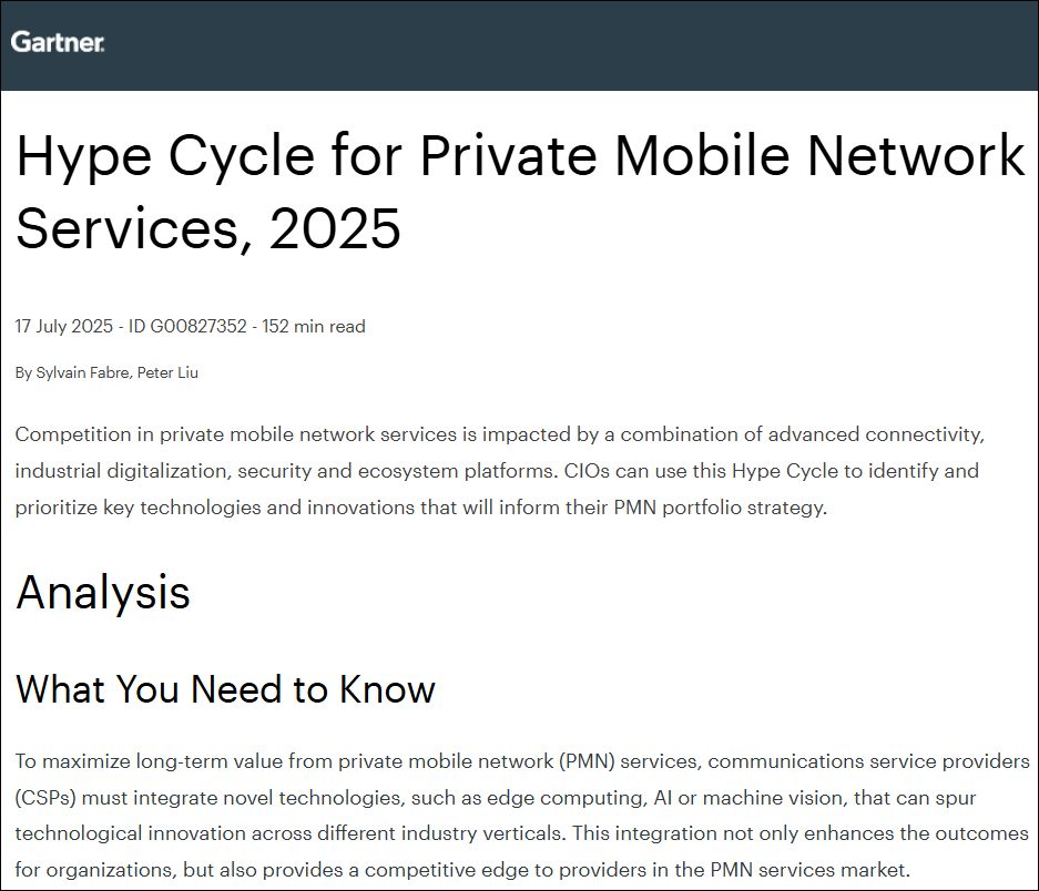 Gartner Hype Cycle for Private Mobile Network Services, 2025