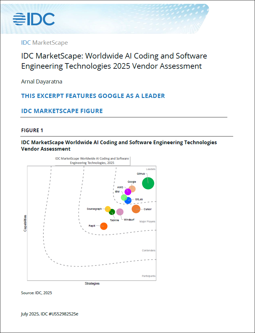 In this assessment, Google is positioned in the “Leaders” category for its Gemini Code Assist offering. Key strengths contributing to this position include its:
