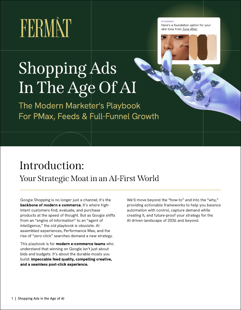 This playbook is for modern e-commerce teams who understand that winning on Google isn’t just about bids and budgets. It’s about the durable moats you build: impeccable feed quality, compelling creative, and a seamless post-click experience.